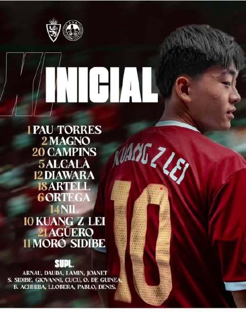 足球比分网8月9日讯 西协乙球队莱里达竞技季前热身赛对阵皇家萨拉戈萨的预备队,16岁中国小将邝兆镭身披10号球衣首发出战。 赛前邝兆镭社媒发文:首发公布,登场亮相,战袍在身...