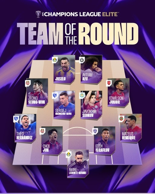 足球比分网10月6日讯 亚冠官方公布亚冠精英联赛第二轮最佳阵容,何塞卢、特奥、米林科维奇领衔,中超无人入选。 亚冠精英联赛第二轮最佳阵容: 门将:阿米内-莱孔特-阿达尼(加...