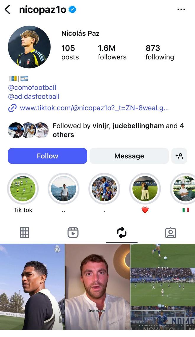 早些时候,科莫21岁中场球星尼科-帕斯转发了皇马俱乐部官方发布的球队训练视频。 早些时候,尼科-帕斯转发了皇马俱乐部官方发布的球队训练视频。2024年夏天,帕斯以600万欧元的价...
