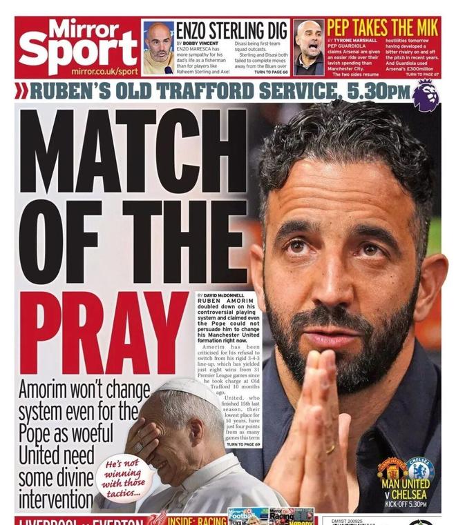 在曼联周六主场对切尔西的比赛中,鲁本·阿莫林仍将继续使用他坚持的343阵型。数据显示,他带领红魔的47场比赛,球队全是343打法,没有任何例外。葡萄牙人表示,即使教皇出马,也...