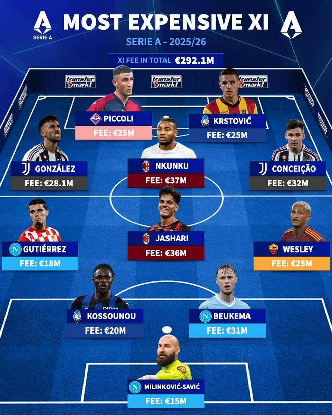 北京时间9月5日,德国转会市场统计了意甲本赛季夏窗转会费最贵阵,其中恩昆库领衔,那不勒斯3人入选。 意甲夏窗转会费最贵阵 门将:瓦尼亚-米林科维奇-萨维奇(那不勒斯 1500万欧...