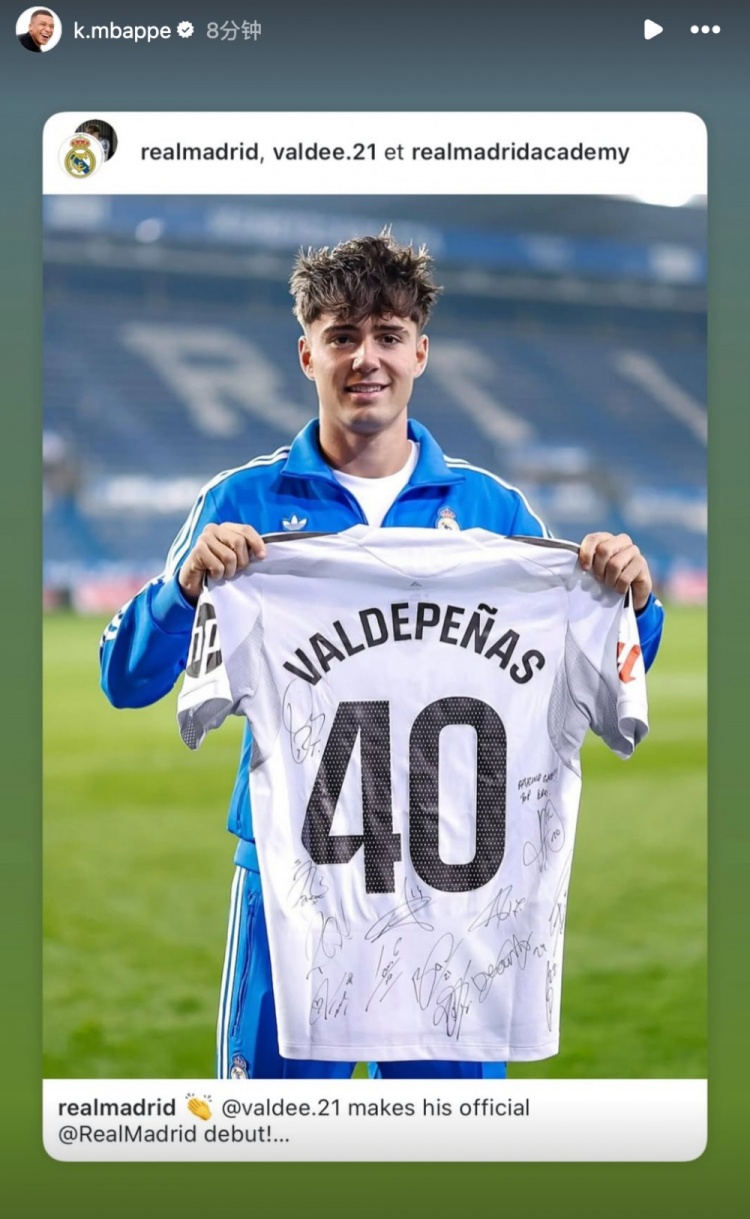 足球比分网12月15日讯 西甲第16轮,皇马客场2比1击败阿拉维斯。本场比赛中,皇马青训小将巴尔德佩尼亚斯首次代表皇马一线队出场,完成个人首秀。皇马官方晒出巴尔德佩尼亚斯照片...