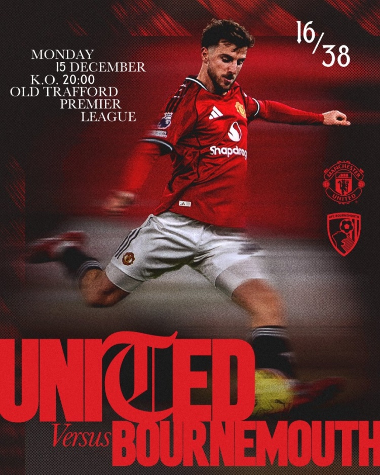 足球比分网12月15日讯 北京时间明天凌晨4点,曼联将在英超第16轮比赛中主场对阵伯恩茅斯。 曼联官方社媒发布了此役的赛前海报,队内中场芒特单人出镜。 曼联积25分排名英超第8位,...