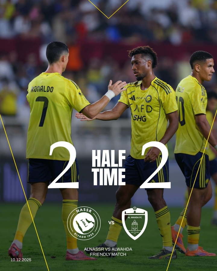 足球比分网12月11日讯 友谊赛,利雅得胜利vs阿布扎比统一,比赛第30分钟,科曼内切爆射破门,利雅得胜利2-1领先。...