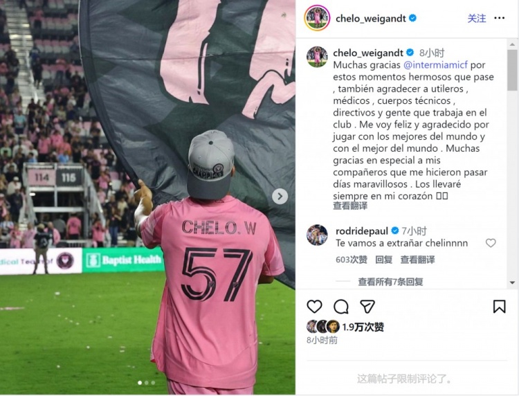 足球比分网12月12日讯 阿根廷边卫韦甘特租借合同到期,离开迈阿密国际,重返博卡青年,韦甘特社媒发文,与迈阿密国际告别。 韦甘特社媒写道:“非常感谢迈阿密国际足球俱乐部,...