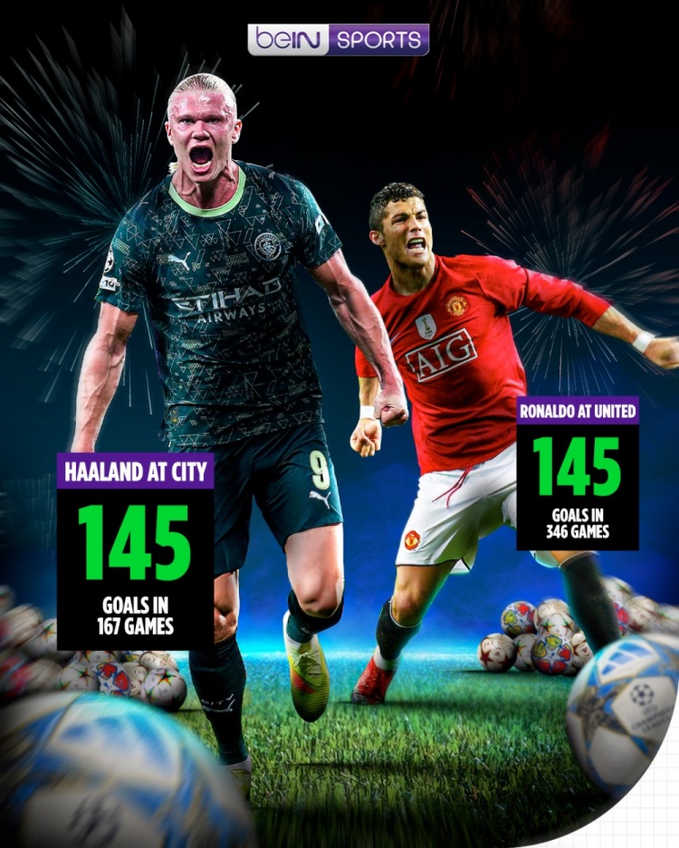 足球比分网12月12日讯 C罗和哈兰德都被誉为这个时代的进球机器。目前的C罗正在沙特联赛冲击千球纪录,而哈兰德则在英超碾碎所有的进球纪录。 据beinsport数据统计,哈兰德如今已经...