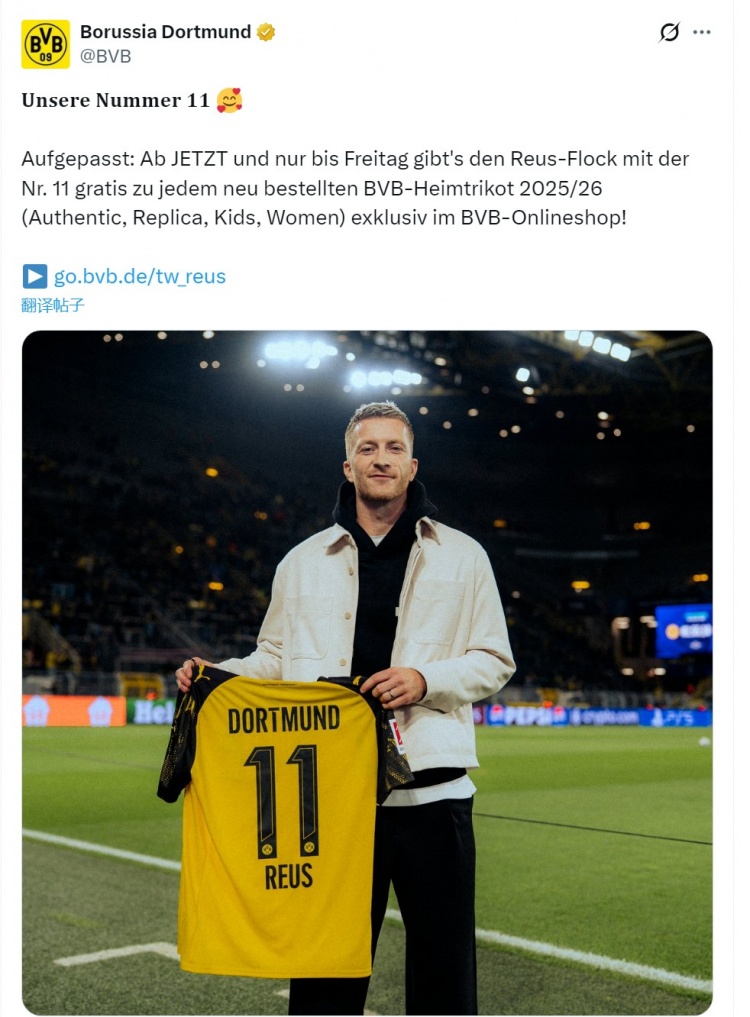 足球比分网12月11日讯 罗伊斯出任多特俱乐部大使,多特官方宣布,俱乐部将为购买本赛季主场球衣的球迷免费提供罗伊斯印号。 多特发布公告: 从即刻起至本周五,在多特蒙德官方线...