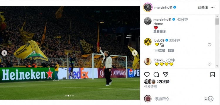 足球比分网12月12日讯 罗伊斯更新社媒动态,晒出重返多特主场的照片。 罗伊斯出任多特俱乐部大使,并重返威斯特法伦球场,现场观看了多特2-2战平博德闪耀的比赛。 罗伊斯社媒晒出...