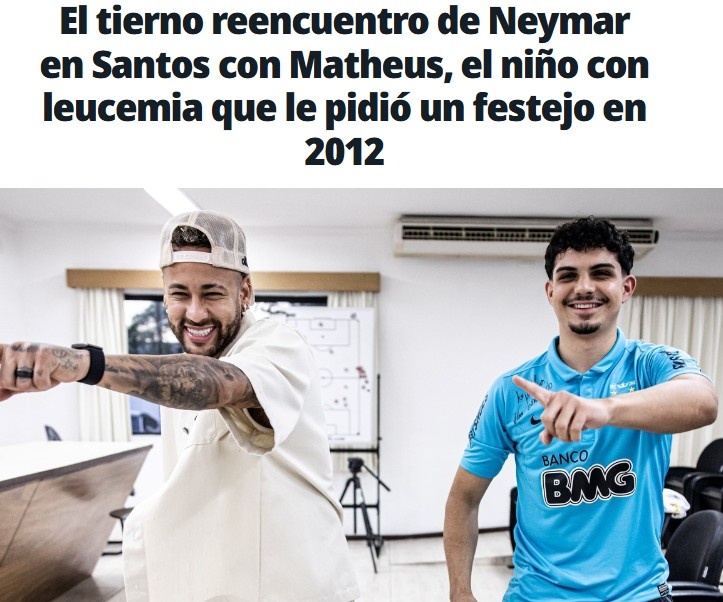 足球比分网12月11日讯 据阿根廷媒体《奥莱报》报道,内马尔近日与一位曾患白血病的的球迷时隔多年重逢。 该媒体表示,两人的故事始于2012年,当时年仅6岁且患有白血病的马特乌斯...