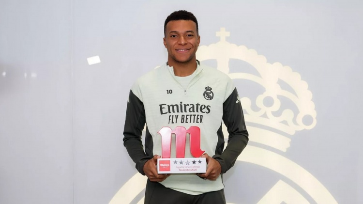足球比分网12月12日讯 官方消息,姆巴佩当选皇马11月的最佳球员。 姆巴佩在11月的6场比赛贡献7球1助,帮助皇马取得2胜3平1负的成绩。其中包括在欧冠对阵奥林匹亚科斯时独中四元,以...