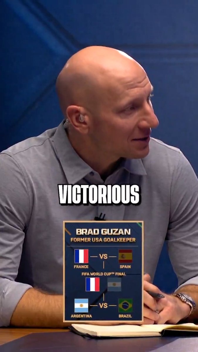 足球比分网12月13日讯 美国门将古赞参加节目,预测了明年世界杯的四强、冠军和金球奖、金靴奖得主。 古赞预测明年世界杯: 半决赛——法国vs西班牙、阿根廷vs巴西 决赛——法国...