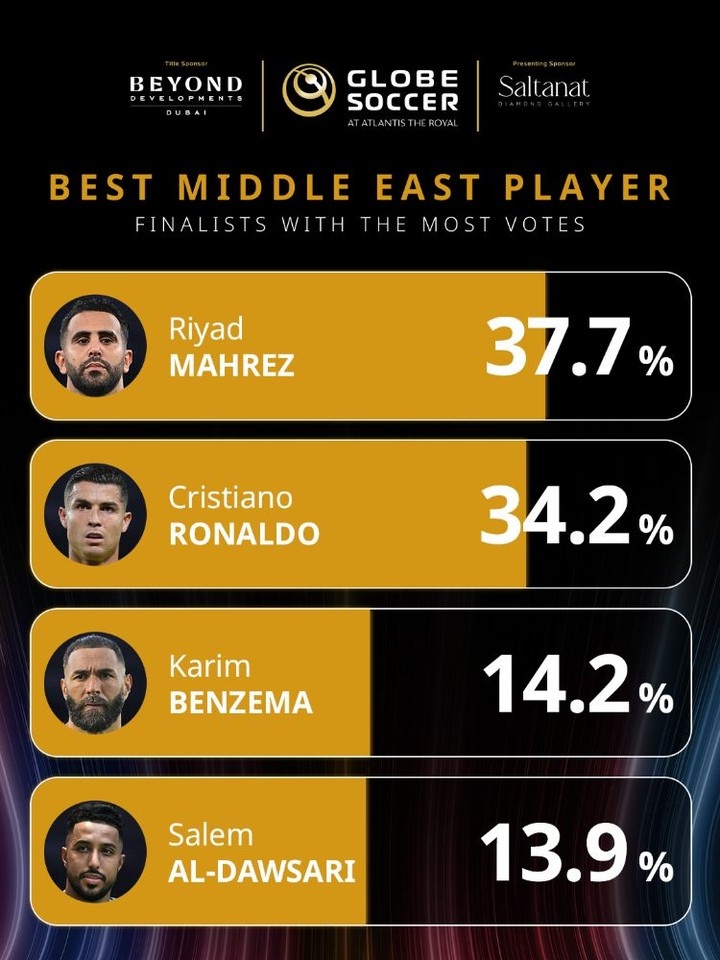 足球比分网12月10日讯 环球足球奖公布了2025年最佳中东球员投票情况,目前马赫雷斯领跑,C罗次席。 2025年环足奖最佳中东球员投票 马赫雷斯——37.7% C罗——34.2% 本泽马——14.2% 多萨...