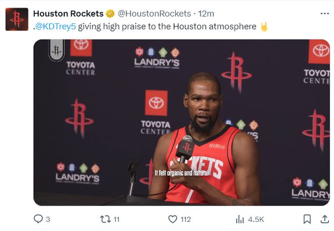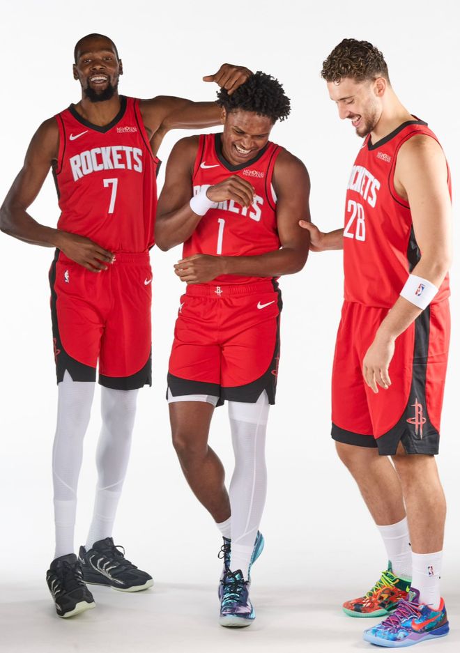 美国时间的9月29日恰巧是火箭新援凯文-杜兰特37岁的生日,火箭队官方也祝贺KD生日快乐,而且这一天也是休斯顿火箭队的媒体日,这对于杜兰特来说算是双喜临门,因为这支球队对他的爱很热烈。 球队官方晒出最新三巨头的定妆照,杜兰特、阿门、申京三人在拍摄现场玩的非常开心,感觉三人已经建立了一些联系,杜兰特也一直让阿门站在C位上,阿门在采访中提到:我从小就看杜兰特打球,没想到有朝一日可以跟他在一支球队打球,这一切都太疯狂了。 杜兰特作为火箭新援在媒体日的采访中谈到了很多东西,这里我为大家筛选出一些很关键的点: 1.第一次作为火箭球员走进休斯顿球馆很自然没有一丝的违和,我很尊重这支球队、教练组、球迷、这座城市,感觉非常棒。我觉得我会跟火箭续约,这是我可以安定下来的地方; 2.虽然没有特意的考虑过是否移居休斯顿,但我一直都说这里是一个适合移居的地方; 3.加盟休斯顿的关键因素是乌度卡,乌度卡一直很理解我的价值、心态、比赛方式,他很尊重我,他给我空间去做自己,我很开心能跟他一同作战。 4.我知道乌度卡的战术体系,我很希望能快攻,突破分球,防守时换防,火箭队有着出色的尺寸优势; 5.火箭队已经具备了夺冠的一切要素:尺寸、换防能力、运动天赋、纪律性、创造空间的球员、团队凝聚力等等,只要将这些要素都融合起来我们就能拿到最终想要的答案,但寻求答案的过程是最迷人的部分; 6.人们总是觉得我一直都在换队,换队后我的处境很艰难,实则不然,我换队后收获了更多的友谊、情感、纽带,这让我的人生变得更有乐趣。 7.虽然我这个岁数了但我每天都在努力训练,完善自己的篮球技术是让我内心平静的不二之选,我就喜欢沉浸在训练的海洋中。 |