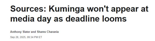 库明加不参加勇士媒体日!抗拒三份现有报价 最