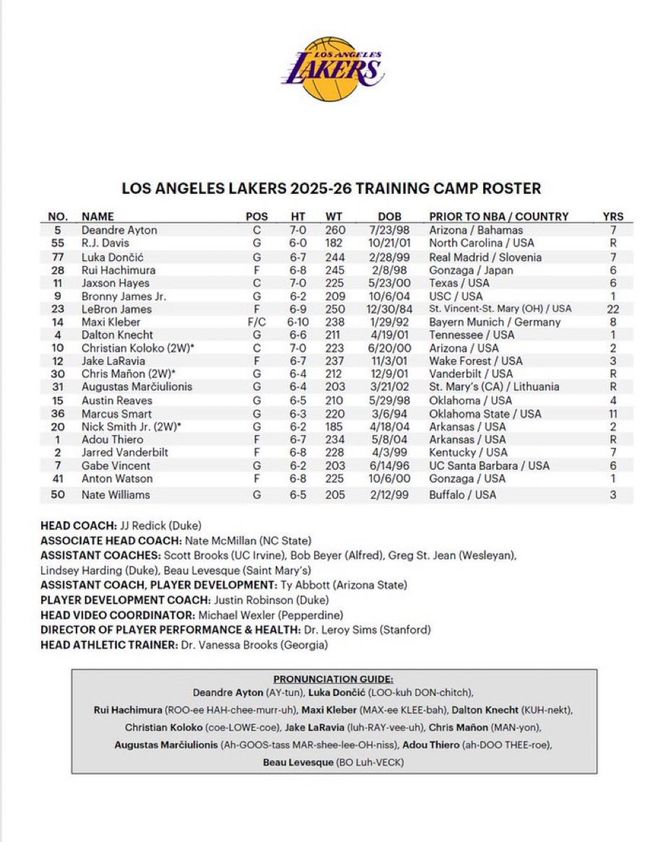 湖人官宣一签一裁!训练营21人名单出炉:詹姆斯