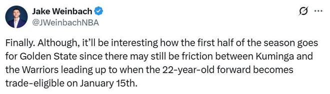 2年4850万,勇士队终于完成与库明加的续约!同时勇士利用第15个正式名额签下小库里,正式确定新赛季金州将上演兄弟篮球,虽然15+3豪阵全面升级,但仍存3大明显短板。 库明加2年4850万续约 根据ESPN名记Shams报道,经过整个休赛期的拉扯,勇士队终于与库明加完成续约。 双方签下了一份2年价值4850万美元,第二年为球队选项的新合同,方便球队在明年夏天重新做决定。 名记Shams也在后续详细报道中指出,勇士与库明加在续约中选择各退一步,为未来的交易提前做好准备。 库明加没有接受3年7500万美元的报价,而是两年合同,以方便在明夏离队,同时接受在续约合同中放弃交易否决权与球队选项。 勇士队也在交易中做出薪资方面的让步,相比于最初的报价,库明加最终签下的2年合同总额提升了800万美元。 在续约中做出让步的同时,双方也在交易方面达成一致,当库明加在26年1月份获得交易资格时,双方大概率将继续探索交易可能。 ClutchPoints名记Brett Siegel也在后续报道中给出了相似的说法,同时指出库明加签下了一份非常有利于交易的合同。 加上这个休赛期大部分球队没有薪资空间,将合同延续到26年将会让库明加得到多年期长约的可能性大幅提升,这也是他放弃交易否决权的重要原因。 升级15+3大名单 在搞定库明加续约之后,勇士队也终于可以正式签约霍福德等新援,名记Mike Scotto曝出双方动用中产特例达成了一份2年价值1200万的合同,第二年为球员选项。 随着动用中产特例签约霍福德,勇士队触发硬工资帽,加上库明加签约金额提升,导致勇士队没有足够的薪金空间立刻签下第15人。 目前勇士队距离二档土豪线还差203万,无法直接签约第15人,但根据Shams报道勇士队已经确定用第15个名额签下小库里。 只不过,受困于薪金空间问题,勇士预计将等到11月中旬时才能用1年底薪签约小库里,这意味着,新赛季勇士队将正式迎来兄弟篮球。 随着签下库明加与小库里,勇士队15+3大名单全面升级,具体名单如下: 潜在首发:库里、波杰、巴特勒、追梦、霍福德; 10份正式合同:穆迪、希尔德、桑托斯、TJD、波斯特、小佩顿、梅尔顿、理查德、库明加、小库里; 3份双向合同:罗维、图希、斯潘塞。 3大短板仍明显 虽然勇士队拥有库里+追梦+巴特勒+霍福德的豪华首发阵容,同时引进小佩顿、小库里、梅尔顿等一众新援,但勇士队3大短板依旧明显。 第一大短板:耐久度 勇士队首发名单足够豪华,但耐久度与健康状况存在不小的问题,库里+追梦+巴特勒+霍福德4名确定的首发球员都是35+老将,合计高达147岁。 第二大短板:锋线深度 随着小库里的加盟,勇士队后卫线储备溢出,但锋线深度极其有限,只能期待库明加在交易前承担更大的角色,同时让巴特勒更多留在场上。 第三大短板:内部矛盾 库明加虽然完成续约,但明显是为了交易离队做准备,无疑是勇士队内部巨大的不确定因素。 美记Jake Weinbach坦言,勇士队前半个赛季显然会很热闹,在1月15日交易限制解除之前,库明加很有可能与球队闹矛盾。 |