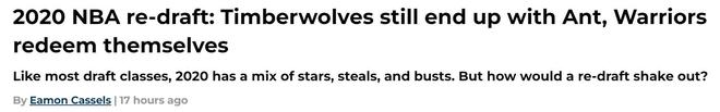 勇士队看走眼!美媒重排20年NBA乐透秀:状元郎不