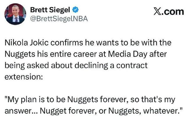 雄鹿新赛季媒体日。 字母哥因病没有出现在现场,而是通过视频连线的方式。 希腊怪兽坦诚承认今夏曾评估未来去向,并表示他一直希望能在有机会让自己赢得总冠军的球队效力。 非常显然,字母哥话里话外又给雄鹿施压了,至少现在尚未排除离队的可能性,他正在执行的合同28年夏天到期。 这哥们未来三个赛季薪资分别为5413万美元、5846万美元和6279万美元,27年夏天拥有球员选项可以拒绝执行进入自由市场。 于是湖人勇士等队,都准备在27年夏天大展拳脚,正为此想方设法腾出足够的薪资空间。 忠诚?一人一城? 拜托,NBA可是商业联盟,球队可以随意交易球员,球员自然也能决定自己的命运。 字母哥谈及东契奇被独行侠交易到湖人一事时,直言惊掉下巴,后者都能被交易那还有谁不能。 而且字母哥对交易这件事向来看得很开,此前接受采访时直言自己准备好了被交易,倘若真到了那一天可以理解球队老板的做法,当一名球员失去应有价值时被送走情理之中。 如果非要说忠诚,那倒是对自己的国家有着绝对的忠诚。 希腊男篮拿下今年欧锦赛铜牌之后,字母哥在镜头面前热泪盈眶,21年NBA总冠军都没让他那么激动。 希腊篮协主席里奥利奥斯前几天说道:“只要不遭遇严重伤病,字母哥就会一直为国家队效力。” 言归正传。 “离队”,字母哥不是开玩笑的,雄鹿也知道他不是开玩笑的。 所以要么得在未来两三年重新搭建起夺冠框架,要么深知留不住的话,那就尽快筹备交易方案。 才30岁,连续三个赛季常规赛30+11,交易价值简直逆天,完全可以换来潜力新星+很多个首轮签用于重建。 25-26赛季,注定又是浪费字母哥巅峰期的一年,如今在他身边的队友是波蒂斯、库兹马和特纳等人,冲击东部季后赛没问题,可冲冠毫无疑问难于上青天。 不要指望一人超神就能登顶,字母哥今年季后赛场均33分15.4板6.6助1断1帽,投篮命中率60.6%,都没法带队闯过首轮,1-4被步行者轻松击败。 新赛季外界对于字母哥的最大或许也是唯一期待,便是看他是否能够拿到得分王,从而实现超级大满贯?已经将MVP、总冠军、FMVP、DPOY和最佳进步球员奖等重磅荣誉全部收入囊中。 总之,接下来的NBA交易市场,最值得关注的就是字母哥,随时会颠覆联盟争冠格局的那种。 可能有老哥喷了,把约基奇放到哪里去了?照样有很多球队馋他身子馋到受不了。 Jokic才在新赛季媒体日表达了希望永远留在掘金的愿望,今夏拒绝提前续约,是因为等到明夏可以签约四年约2.92亿美元超级顶薪。 彦祖们对字母哥的未来去向有何看法呢?评论区抄起键盘大胆开麦疯狂对线,双击屏幕即可直接点赞哟! |
