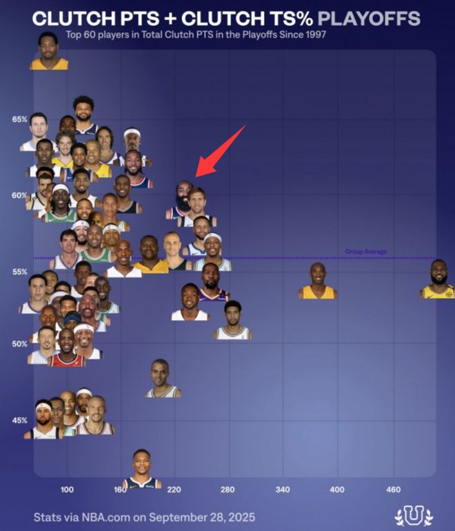 关键球比肩诺天王!效率力压库里詹皇KD,谁说哈