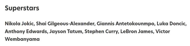 火箭队3人入选!在距离新赛季季前赛仅剩4天之际,美媒《fadeawayworld》公布出新赛季4档球星,其中超巨共9人,哈登与欧文仅屈居第3档。 第四档(新星):马克西、三球、切特、申京、阿门、加兰、瓦格纳与巴恩斯 这一档的大部分球员都在所在球队扮演着未来核心角色,火箭队两大新星阿门与申京算是完美的代表。 申京已经在上个赛季入选全明星,但想要更进一步成长为稳定的全明星,申京还需要在攻防两端取得长足进步,尤其是防守硬度与投射稳定性。 阿门还没有入选全明星,却比申京拥有更为夸张的基础身体天赋,同时已经是现役最好的防守者之一,只要能够开发出稳定的投射,阿门不仅将是稳定的全明星级别球员,甚至有希望成长为巨星,乃至联盟门面级别的超级巨星。 第三档(全明星):西卡、小萨、欧文、哈登、特雷杨、莫布里、小卡、恩比德、莫兰特、小贾伦-杰克逊、阿德巴约和利拉德。 这一档的球员构成较为复杂,其中哈登与欧文算是其中两类球员的主要代表。 欧文之所以仅排在第三档,主要是因为遭遇重伤困扰,恩比德、小卡、利拉德等球员也是因为这一点才落入第三档,如果能够摆脱伤病困扰,他们均有望杀入更高层次。 哈登巅峰期是第一档超巨行列,但在生涯这个阶段,哈登已经转型组织者,只能担任二当家角色,未来很长一段时间也只能屈居三档,西卡、小萨等球员也是如此。 第二档(巨星):班凯罗、哈利伯顿、布克、布伦森、坎宁安、唐斯、杜兰特、米切尔、浓眉哥、杰伦威廉姆斯和杰伦布朗。 这一档球员名单存在着巨大的争议,因为大部分入选的球员并非是实打实的巨星,只是在所在球队扮演着大当家角色。 甚至有杰伦威廉姆斯和杰伦布朗这种球队二当家,两人之所以入选,主要是因为两人所在的球队顺利赢得总冠军,在成就方面占据绝对优势。 相比之下,班凯罗、坎宁安这两名球员入选显然更具争议性,因为两人甚至还没有达到稳定的全明星级别,尤其是班凯罗这名进攻效率不佳的魔术锋线核心。 第一档(超巨):约基奇、亚历山大、字母哥、东契奇、爱德华兹、塔图姆、库里、詹姆斯和文班亚马。 相比于第二档的巨星榜单,第一档的超巨榜单争议更加巨大,因为超巨的定义门槛明显更高。 其中詹姆斯与库里作为老牌超巨入选可谓是实至名归,尤其是考虑到两人的年龄与赛场表现,库里与詹姆斯完美诠释了何为超级巨星。 约基奇、字母哥、东契奇与亚历山大则是中生代超级巨星,也完全配得上这份榜单,四人无论是个人能力,还是带队战绩都达到了顶尖水准,正在从詹杜库老一代超巨手中接过联盟门面的大旗。 相比之下,爱德华兹、塔图姆与文班亚马距离超巨则还有一定的差距,尤其是还没有取得任何成就的文班亚马。 |
