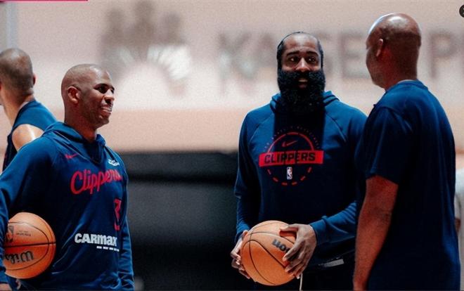 泪目!哈登保罗同框训练,快船首发确定4人:比