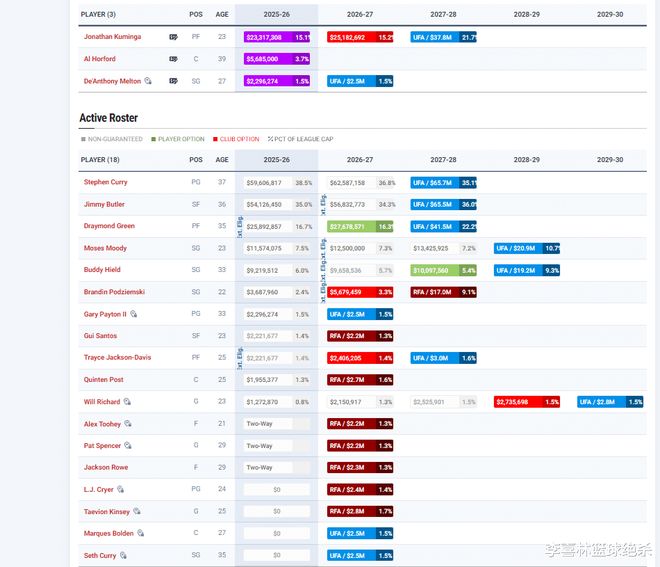 勇士15+3阵容出炉!豪赌四老冲冠变强还是留患?