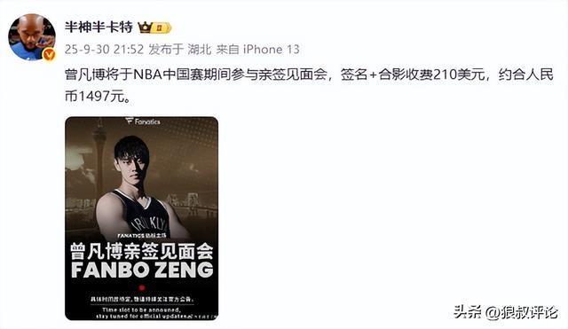 北京时间10月1日,根据媒体人“半神半卡特”的报道,今年NBA中国赛期间,中国球员、篮网前锋曾凡博将参与亲签见面会。除了曾凡博之外,还有韦德、加内特和马布里等名宿也将参加亲签见面会。 价格则是有点小贵,曾凡博的亲签见面会签名+合影收费210美元,约合人民币1497元。 根据此前的媒体报道,曾凡博和篮网签下了一份Exhibit-10 合同。 接下来的目标是冲击双向名额。 但若是签名+合影收费为210美金,那么这一份收入可能会比他在篮网时期的工资更高。 NBA规则对于Exhibit-10条款解释如下: 如果球员签下Exhibit-10条款的球员被NBA球队裁掉,然后加盟了该NBA球队在发展联盟的附属球队并且留队(留在发展联盟球队)的时间达到60天,那么这位球员就可以得到5千至5万美金的奖金。 此外,如果Exhibit-10合同转正成了双向合同,那么上述奖金就直接变成全额保障的工资。 曾凡博与篮网这一份工资,几乎可以说是纯追梦的层面,收入可以达到忽略不计。 有球迷吐槽篮网这个设定吃相太难看,若是割一波韭菜然后裁掉,那么还不如去北京现场看曾凡博,纯是消费曾凡博。 若是能吸引到大量的中国球迷签名+合影,中国赛的火爆程度肯定会上涨一个档次,但曾凡博因此未能获得双向合同,仅仅是打完中国赛就结束相关合作,那么对于曾凡博位置颇为尴尬,他可能在篮网教练组和管理层体系当中,更像是为中国赛送出的合同进一步增加热度的角色。 今年在澳门举行的NBA中国赛对阵双方是篮网和太阳,比赛时间分别是10月10日20点和10月12日19点。 |