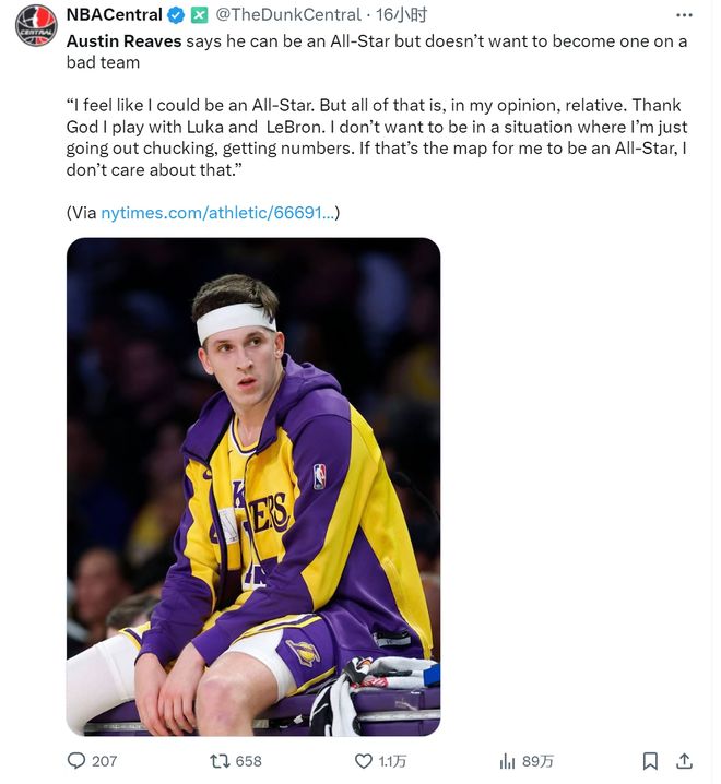 湖人后卫奥斯汀·里夫斯在接受采访时语出惊人:“我完全有能力入选全明星,但我不想靠刷数据来实现这个目标。我不想处在那种只能不断出手、只能刷数据的环境,那样的全明星荣誉我根本不在乎。”这番表态在NBA圈内掀起轩然大波,也让他在这个夏天的续约风波再次成为焦点。 今年休赛期,里夫斯做出了一个大胆决定——拒绝湖人开出的4年8920万美元续约合同,这是球队现阶段能提供的最大合约。谈到这个决定时,里夫斯显得相当冷静:“这并不意味着我不想留在洛杉矶,事实上我希望整个职业生涯都能为湖人效力。但是说到底,这是一桩生意。” 《洛杉矶时报》湖人随队记者丹·沃伊克在最新报道中透露,里夫斯计划在明年夏天跳出合同试水自由市场,寻求一份年薪3500万至4000万美元的大合同。这意味着他想要的是一份4年总价1.4亿到1.6亿美元的超级合约。如果湖人无法满足他的要价,很可能在本赛季中就将他交易离队。 现年27岁的里夫斯虽然只在NBA打了四个赛季,但实际上他比独行侠球星卢卡·东契奇还要年长一岁。他现有的合同是4年5400万美元,2025-26赛季年薪为1394万美元,2026-27赛季是价值1490万美元的球员选项。以他上赛季场均20.2分4.5篮板5.8助攻1.1抢断的数据,在自由市场上拿到均薪2500万美元的合同确实不成问题。 然而数据背后隐藏着一些隐忧。上赛季季后赛中,里夫斯的表现出现明显下滑:场均数据降至16.2分5.4篮板3.6助攻,投篮命中率只有41.1%,三分命中率更是跌至31.9%。这样的表现让人不禁质疑,他是否真的配得上一份年薪3500万美元以上的顶薪合同。 有球迷一针见血地指出:“里夫斯如果离开湖人体系,未必能打出这样的数据。”在勒布朗·詹姆斯和安东尼·戴维斯身边打球,里夫斯确实获得了更多的进攻空间和机会。一旦脱离这个舒适区,他是否还能维持高效表现确实是个未知数。 湖人管理层现在面临艰难抉择。如果无法在赛季中期与里夫斯达成续约协议,他们可能不得不考虑交易选项,以免在明年夏天白白失去这位重要球员。但另一方面,放走这位场均20+5+5的后卫,对球队战力将是巨大打击。 里夫斯的自信并非空穴来风。上赛季他三项命中率分别达到46%、37.7%和87.7%,展现出了出色的得分效率。但要在竞争激烈的西部入选全明星,他需要面对的竞争对手包括斯蒂芬·库里、卢卡·东契奇、德文·布克等超级后卫。 |