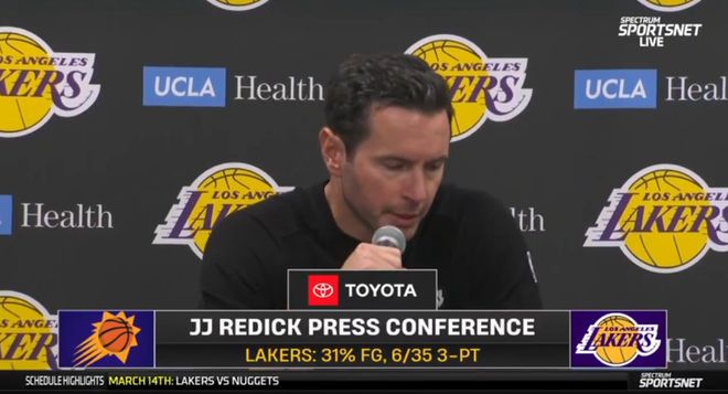 雷速体育10月4日讯 湖人今天81-103不敌太阳,季前赛首战告负,东契奇和勒布朗缺席了本场比赛。 赛后,湖人主教练雷迪克谈到了湖人本场比赛的表现。 他表示:“我没指望季前赛能打出完美表现,但这些方面确实还有提升空间。说实话,我不是在找借口,这完完全全就是实际情况:整个9月,他们(太阳)健身房里一直有19个人一起训练,也完成了战术体系的搭建,和我们去年的节奏差不多。9月份的时候,他们就已经把大部分战术框架都磨透了。而且他们已经进行了7 次合练,从这个角度来说,他们确实比我们进度快,掌握的战术内容也更多。 其实在防守端我这种感觉更明显,他们的防守理念、战术体系,显然都已经打磨得非常熟练、紧密了。我们只是还没来得及有足够时间去磨合这些,但我们肯定能赶上的,我非常有信心。” 本场比赛,湖人投篮命中率31%,三分命中率17%。 |