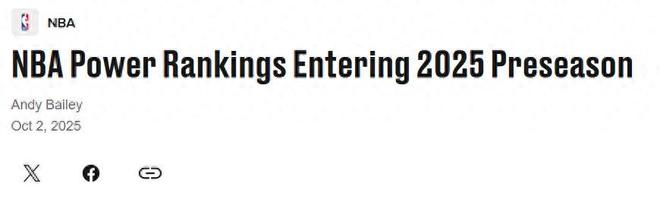 火箭队第4!美媒公布新赛季首期实力榜:湖人队