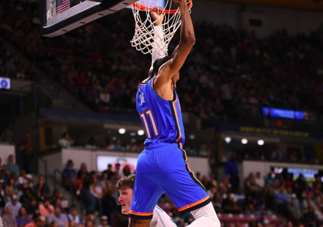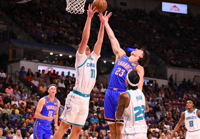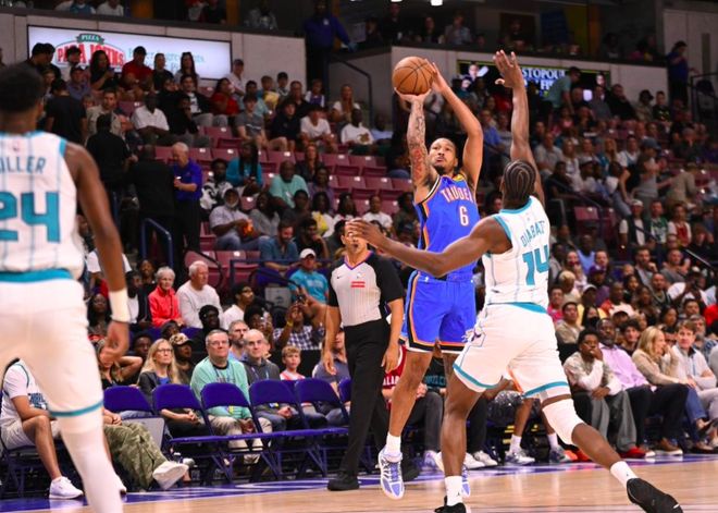 北京时间10月6日,NBA季前赛继续展开,卫冕冠军雷霆对阵黄蜂。本场比赛雷霆首发五人全都缺席,可上来他们状态十分火热,两队防守强度也不大,维金斯帮助球队占据主动,半场领先13分;下半场雷霆延续火热的状态,完全压制着黄蜂,将分差拉开到20分以上。最终,雷霆135-114大胜黄蜂,取得了季前赛的开门红。 雷霆在上赛季夺得了总冠军,休赛期阵容上也没有什么调整,季前赛首战球队首发全都缺席,派出托皮奇、乔、维金斯、吉昂和杰林·威廉姆斯的首发阵容。可就算是缺少主力球员,雷霆球员在场上依然充满自信,面对黄蜂主力也不落下风,进攻端多点开花,每个球员上场都能做出贡献,一直占据着场上主动,最终取得了一场21分大胜。 没有亚历山大、杰伦-威廉姆斯和霍姆格伦,甚至卡鲁索、哈滕和多尔特也都没有出战,可就算是这样雷霆依然展现出强大的阵容深度,每个球员上来都能得分。全队飙进20记三分,送出了33次助攻,全面压制对面的黄蜂。 而这一次雷霆只有11名球员出战,其中更是有高达7名球员得分上双,其中维金斯拿到全场最高的23分,正负值+23也是全场最高。此外,扬布拉德替补三分8中5拿到20分,杰林-威廉姆斯和吉昂都拿到17分,莱昂斯拿到11分11篮板的两双,戈特曼15分,托皮奇10分7助攻。 黄蜂这边手感低迷,主力全都打了10多分钟,可他们在场上也没有占据上风。这次鲍尔打了15分钟,三分6中3拿到11分;米勒三分5中0只拿到8分,布里奇斯6中3拿到7分8篮板。很显然,黄蜂新赛季想要实现逆袭还是有些困难的,就目前的阵容搭配依然不是很有竞争力。 |