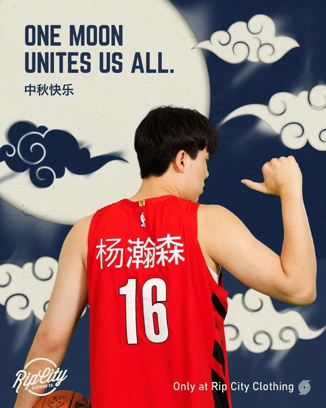 开拓者官方送上中秋祝福,并宣布推出杨瀚森中