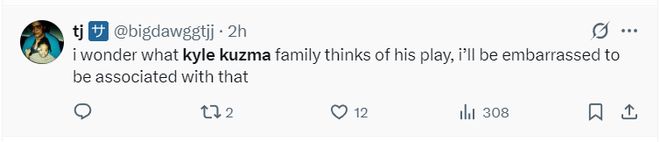 北京时间10月7日,NBA季前赛,雄鹿103-93大胜热火。这场比赛雄鹿的核心扬尼斯只参与了赛前的训练但没有出战,热火的核心泰勒-希罗也没有出战,前三节两队都打得有来有回,可末节热火突然断电被打35-22吞下惨败。 这场比赛最扎眼的当属0分哥凯尔-库兹马,他在今年4月19日对阵步行者的比赛中22分钟里怒砍0分0篮板0助攻0抢断0盖帽,这张图在本场比赛的赛后又被雄鹿球迷所疯转。 作为球队的先发大前锋,全场比赛17分钟,6中1,三分1中0,拿到2分8篮板1助攻1失误,命中率16.7%。最离谱的是在篮下出手了4次只命中一球,上篮都上出了一个过桥!库兹马这个状态真是令人无奈。 这场比赛首节开场库兹马命中第一个球后就开始了疯狂的打铁、三不沾之旅,这一球他面对威金斯后仰中投直接来了一个中投三不沾,雄鹿替补席都没眼看,现场有嘘声出现。 其实在雄鹿训练营中库兹马的表现就成为热门话题,罚球线胯下运球训练竟然运丢了,随后的罚球线跳投训练也是连续三次打铁,美媒全场记录库兹马这些五大囧时刻。 美球迷:库兹马绝对是联盟最愚蠢的球员,加上他糟糕的表现,他成为联盟最具威胁的球员之一,他这种威胁是针对自己的球队,看起来库兹马是联盟最差的球员之一。 美球迷:库兹马6中1?这简直太离谱了,我们干脆买断他吧。 凯尔·库兹马 1 次 6 次失误?这简直太糟糕了,干脆把他买断算了。 美球迷:我真不知道库兹马的家人是如何看待他?如果是我这样的表现,我会非常尴尬。 |