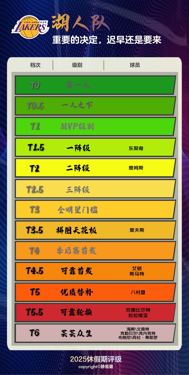 于是我赶紧划掉了关于湖人后勒布朗时代的构想,重新回到东詹共举盛事的叙事,在不确定的中期计划中寻找一些相对确定的赛季展望。 詹姆斯具体还会打几个赛季,看来依旧没有定数。但相比往年,今年休假期的讨论似乎也平和了不少。詹姆斯的计划跟湖人的计划未必同步,湖人自然不能保证做出的所有决定都符合詹姆斯方面的期待。过去几年,围绕“湖人为什么不梭哈”的话题总能聊一个假期,最后也总是以湖人动了又似乎没动的方式进入新赛季。湖人不想冲动,再来一次神龟天降那可就全玩完。湖人也没必要冲动,詹姆斯的时间表还有几年?拼尽全力为不确定的时间表追逐希望渺茫的机会,这跟湖人球馆上空悬挂的荣誉并不合拍。詹是詹,湖是湖,有合作也有各自不同的述求与路径,合情合理。 上个赛季,湖人终于动了,还是史诗级的大动作,看傻了全联盟。有了东契奇,湖人的故事主线发生变动,詹姆斯开始像个支线任务。于是今年好像没有了过份纠结的必要,湖人会根据东契奇的节奏去搭建阵容,后者完成了续约,要在这支球队效力很多年,而这是绝对的建队安全感。所以,在勒布朗打算搞一个大新闻的时候,人们把注意力放在了巡演和梳理他的生涯历程,很少有人去问湖人怎么办,因为这反而不成为一个问题。没有詹姆斯,湖人的建队思路依旧是清晰的,詹姆斯整了活,现在悬念倒是又回来了一些。 湖人有两个首轮给了出去,其余的在自己手里,只是没有次轮签,不算富裕也不算贫瘠,这对东契奇的球队来说倒是常态。2026年会是湖人关键的十字路口,那时候詹姆斯和里夫斯的未来都会给出明确答案。最极限的情况是湖人失去两人而无所收获,即便如此,起码会留下一笔可用于补强的薪资空间。湖人从来不惆怅没有球星愿意来,惆怅的是市场上什么时候有球星离队,以及自身是否有接收的条件。东契奇+薪资空间,这是湖人最不利情况下拥有的条件,你可以等待瞬息万变的联盟会发生些什么。你能猜到浓眉换东契奇的交易吗?显然不能。可能湖人获得下一个球星的剧情也猜不到。 站在25-26赛季开始前的现在,畅想湖人还有什么运作,确实并不容易。湖人休假期跟维金斯传了一些绯闻。因为掺杂了莱利跟詹姆斯的个人恩怨,能不能做成已经不都是筹码博弈那么简单。这倒不是湖人运作最难测的部分,更难测的是“围绕核心建队”的“核心范围”不确定。围绕东契奇是确定的,之后的2~3人是谁?东契奇+詹姆斯+里夫斯,东契奇+詹姆斯,东契奇+里夫斯,或者东契奇+“?”,这四种底层框架能支撑的是不同的上层建筑: 东契奇+詹姆斯+里夫斯。需要优质前场拼图,能承担领防是起码的要求,进攻也应该在水准线以上,不然何谈补强。由于湖人有多笔可作为配平筹码的千万合同,总薪资也控制在了第一土豪线以下,运作上有弹性。关键看代价。一个很现实的疑问是,詹姆斯在底层框架内的时间还有多久?而里夫斯在明年夏天之前大概都不会确定未来。两个核心有变数,这笔可能作为球队第四点的补强就耐人寻味。如果湖人在这里花费过多成本,未来应对大机会的灵活性就会丢失一些; 东契奇+詹姆斯。如果是这个版本,就说明里夫斯作为筹码交易掉了。一笔交易中有里夫斯,那说明湖人拿到的不会是一个简单的拼图——凯斯勒不应该在这个级别。这个版本头疼的地方在于,里夫斯的交易价值不能过份高估,因为他是一笔事实上的到期合同。对那些薪资空间本就不紧张的重建球队来说,通过交易获得里夫斯的鸟权紧迫性不高。里夫斯当初续了一笔白菜价的合同,这份合同过于便宜现在却有了副作用,它使得湖人几乎没办法跟里夫斯完成提前续约(提前续约规则下合同增幅有限,达不到里夫斯的合理身价)。这个矛盾点或许会导致湖人跟里夫斯之间的悬念在明年夏天才能解开; 东契奇+里夫斯。这个版本的答案会接近于东契奇+詹姆斯+里夫斯版本。说白了,有没有詹姆斯,湖人都需要引入一个能防守的前场。由于詹姆斯的合同很难交易,不管他未来计划如何,在湖人平稳打完25-26赛季基本都是确定的,所以补强前锋的交易跟他无关,使用的筹码跟第一个版本是类似的; 东契奇+“?”。这个版本暗示了,会有一个高水准的第二球星在未来等着湖人。如我们前文所说,你不知道谁会出走,什么样的方案在酝酿,但它可能以意想不到的方式发生。如果是这个路线,25-26赛季就没必要搞大动静。 把几种情况捋了一遍,不难发现,以有限代价引入一个不错的前锋(能防守,进攻水准线以上),并确保这份合同在未来运作中有灵活性,这应该是当下相对有确定性的方案。维金斯的名字被提到也是合理的,他一定程度满足以上要求。但维金斯也是有变数的,他拥有2026年的球员选项,接近一笔到期合同,这进一步决定了“有限代价”可能真的很有限,那么本就主观上不乐意的热火为什么要同意就成了问题。 市场上当然还有其他选择,实力不俗、主队可能在赛季中有变动、大概又不会太贵的锋线拼图,第一个想到的人选其实是狄龙·布鲁克斯。但更衣室气氛就......这句话在最近的文章里,似乎不是第一次出现。龙子的路走窄了啊! 谈了这么多补强预期,我想表达的还是一件事——湖人的阵容搭建尚没有完成。没有一套基于强大前场协防的防守体系,想赢得西部顶层竞争是困难的。这可能是在刻舟求剑,但东契奇在独行侠打入总决赛