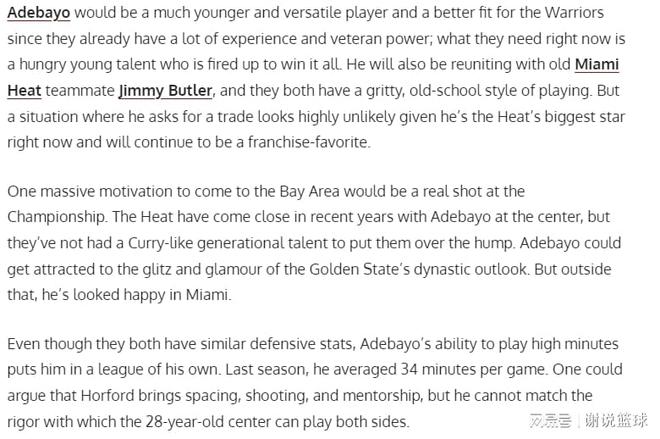 勇士该交易热火明星中锋?上赛季场均18分10板,