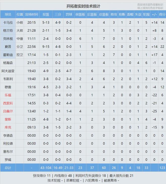 北京时间10月9日,NBA季前赛:勇士主场vs开拓者。杨瀚森终于迎来开拓者首秀,本场替补出战。开拓者首发:朱-霍勒迪、谢顿-夏普、卡马拉、格兰特、克林根。开拓者还在调整阵容,球队核心之一的阿夫迪亚本场也是替补。 勇士首发:库里、穆迪、巴特勒、追梦、霍福德。网友调侃:穆迪就是来拉低平均年龄的。开拓者主帅比卢普斯赛前说道:“杨瀚森第一次打NBA比赛,而且是对阵勇士和库里,这对他来说意义重大,他会利用这些机会去变得更好。” 话说回来,季前赛跟常规赛不同,主力球员一般只打半场,替补的上场时间并不少。首节还剩8分11秒,杨瀚森正式登场,第一个回合被吹了抢篮板犯规。两队攻防节奏很快,杨瀚森有点跟不上,弧顶持球1v1被霍福德逼到失误。 选秀大会结束之后,杨瀚森3个月增重了8公斤,目前体重来到122公斤。杨瀚森主要是增肌,降低体脂率。好处是提升对抗,但是会影响移动速率。第一节后半段,开拓者轰出一波13比0。首节战罢,开拓者39-25领先勇士14分。 杨瀚森第一节出战5分37秒,没有投篮出手,得到1助攻1失误1犯规。第二节杨瀚森打了4分多钟,三分线外有一次出手机会,可惜没能命中。低位单打波斯特,也被吹了走步违例。开拓者第二节全队砍下34分,单节依然净胜勇士2分。 上半场打完,开拓者73-57领先勇士16分。夏普20分3板2助、阿夫迪亚13分6板2助、卡马拉12分3板2助。勇士这边,巴特勒12分2板3助2断、库里11分4板3助。杨瀚森打了10分钟,1投0中,得到0分1板1助2失误1犯规,正负值+3。 大家还是要多一点耐心,这毕竟是小杨第一场正式比赛。第三节还剩7分24秒,杨瀚森接到卡马拉妙传,双手放篮得手,打进本场第一球,队友纷纷跟他击掌庆祝。阿夫迪亚突破上篮不中,杨瀚森点进篮筐,单节得到4分2篮板。 前三节打完,开拓者97-78已经领先19分。本以为第四节沦为垃圾时间,没想到风云突变,勇士一波12比0迫近到个位数。杨瀚森篮下错位打斯潘塞,开拓者的球依然给不进去。最后3分钟勇士追到1分,杨瀚森篮下强起被吹进攻犯规。 末节1分35秒,杨瀚森又被吹了一个掩护犯规,6犯离场了。下半场杨瀚森出现体力不支的情况,其实他只打了20分钟左右,体能依然是最大问题。杨瀚森此役出战21分13秒,投篮5中2,三分2中0,拿到4分4篮板1助攻4失误6犯规。 全场结束,开拓者123-129不敌勇士,惨遭21分大逆转!末节勇士狂轰51分,单节净胜开拓者25分!最后看看数据,满分10分,你给杨瀚森首秀打几分? |