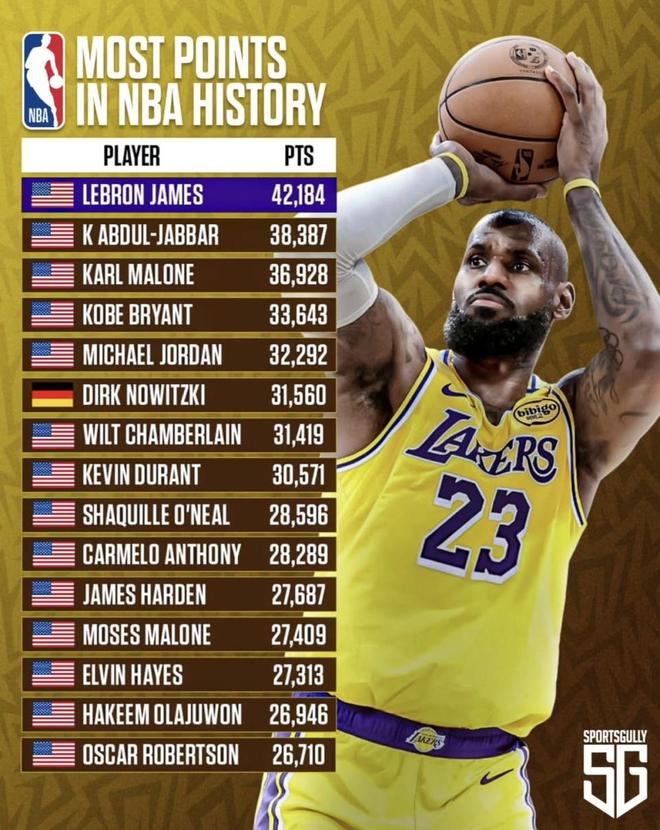 今天,ESPN Stats & Info 公布历史得分榜:詹姆斯领跑,杜兰特与哈登仍在涨分。KD能否逼近科比?哈登有无机会冲进前十? 数据来源:ESPN Stats & Info | 数据截至:北京时间 2025-09-21 具体榜单1) 詹姆斯(LeBron James) 国籍:美国 年龄:40岁 总分数:42,184 职业生涯主要效力俱乐部:骑士、热火、湖人 是否退役:否 2) 阿卜杜尔-贾巴尔(Kareem Abdul-Jabbar) 国籍:美国 年龄:78岁 总分数:38,387 职业生涯主要效力俱乐部:雄鹿、湖人 是否退役:是 3) 马龙(Karl Malone) 国籍:美国 年龄:62岁 总分数:36,928 职业生涯主要效力俱乐部:爵士、湖人 是否退役:是 4) 科比(Kobe Bryant) 国籍:美国 年龄:—(已故) 总分数:33,643 职业生涯主要效力俱乐部:湖人 是否退役:是 5) 乔丹(Michael Jordan) 国籍:美国 年龄:62岁 总分数:32,292 职业生涯主要效力俱乐部:公牛、奇才 是否退役:是 6) 诺维茨基(Dirk Nowitzki) 国籍:德国 年龄:47岁 总分数:31,560 职业生涯主要效力俱乐部:独行侠(小牛) 是否退役:是 7) 张伯伦(Wilt Chamberlain) 国籍:美国 年龄:—(已故) 总分数:31,419 职业生涯主要效力俱乐部:勇士(费城/旧金山)、76人、湖人 是否退役:是 8) 杜兰特(Kevin Durant) 国籍:美国 年龄:36岁 总分数:30,571 职业生涯主要效力俱乐部:超音速/雷霆、勇士、篮网、太阳 是否退役:否 9) 奥尼尔(Shaquille O’Neal) 国籍:美国 年龄:53岁 总分数:28,596 职业生涯主要效力俱乐部:魔术、湖人、热火 是否退役:是 10) 安东尼(Carmelo Anthony) 国籍:美国 年龄:41岁 总分数:28,289 职业生涯主要效力俱乐部:掘金、尼克斯 是否退役:是 11) 哈登(James Harden) 国籍:美国 年龄:36岁 总分数:27,687 职业生涯主要效力俱乐部:雷霆、火箭、篮网、76人、快船 是否退役:否 12) 摩西·马龙(Moses Malone) 国籍:美国 年龄:—(已故) 总分数:27,409 职业生涯主要效力俱乐部:火箭、76人 是否退役:是 13) 海耶斯(Elvin Hayes) 国籍:美国 年龄:79岁 总分数:27,313 职业生涯主要效力俱乐部:火箭(圣迭戈/休斯顿)、子弹(华盛顿) 是否退役:是 14) 奥拉朱旺(Hakeem Olajuwon) 国籍:尼日利亚/美国 年龄:62岁 总分数:26,946 职业生涯主要效力俱乐部:火箭、猛龙 是否退役:是 15) 罗伯特森(Oscar Robertson) 国籍:美国 年龄:86岁 总分数:26,710 职业生涯主要效力俱乐部:皇家(辛辛那提)、雄鹿 是否退役:是 无人能超越詹姆斯?中短期内很难有人超越詹姆斯。理由如下—— 1)分差巨大:詹姆斯42,184分领跑;KD30,571分,差约11,613;哈登27,687分,差约14,497。仅这两位仍现役的追赶者,已被拉开一万分以上。 2)年龄与产量:KD与哈登均36岁、詹姆斯40岁。即便以“27分×65场≈1,755分/季”的高规格连打,也要6–8季才有望抹平分差,届时年龄已42–44岁,现实难度极高(伤病、负荷管理、角色变化都会下调年产)。 3)后浪距离:东契奇生涯总分刚过1.28万,如要追上,需要未来长期保持“30分×70场≈2,100分/季”的健康+核心地位,仍需约14季;且詹姆斯仍在累加,门槛持续上移。 4)耐久性门槛:詹姆斯常规赛+季后赛合计已破5万分,展现出的出勤与稳定性在历史上极少见,这是纪录难被复制的根本。 综合看,未来5–8年内纪录大概率安全;除非出现一位从22岁起就长期保持顶级产量与高出勤的超级天才,且基本无伤病。数据来源:ESPN Stats & Info(历史总得分榜),Basketball-Reference(年龄/生涯信息);数据截至北京时间2025-09-21。 声明:个人原创,仅供参考 |
