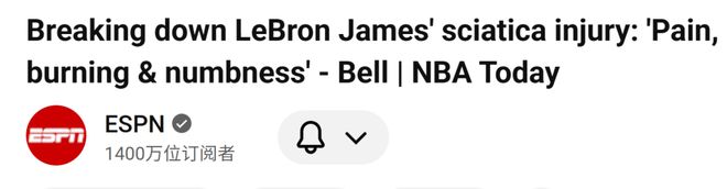 揭秘40岁詹姆斯坐骨神经痛:已持续两个半月以上