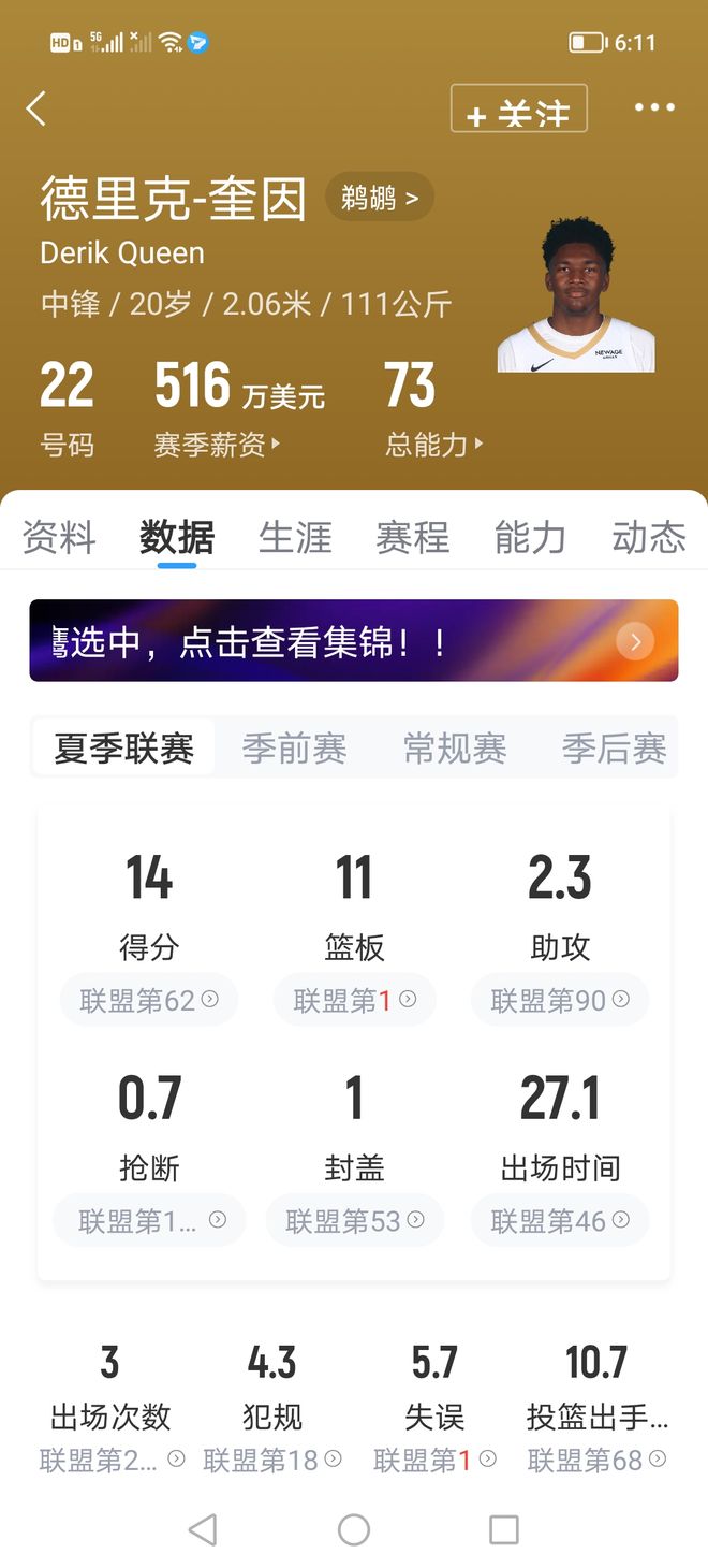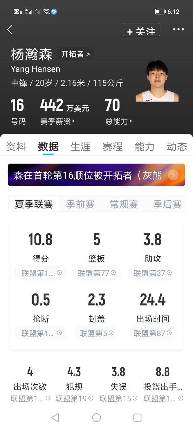 NBA25届选秀大会首轮顺位共有5名内线球员,包括马卢阿奇、德里克·奎因、托马斯·索伯、杨瀚森、若昂·贝兰热。 他们都是第几顺位?来自哪支球队?季前赛首秀数据和表现如何呢? 首轮第十顺位,卡曼·马卢阿奇,来自太阳队 季前赛首秀,他面对湖人队,全场出战9分51秒,投篮2中1,罚球4中2,砍下4分6篮板,同时出现1失误1犯规,全场正负值+2。 首轮第十三顺位,德里克·奎因,来自鹈鹕队 由于奎因在夏季联赛期间遭遇左手手腕韧带撕裂,目前处在养伤阶段,所以未能出战季前赛。 夏联阶段,他场均可出场27.1分钟,场均据是14分11篮板2.3助攻1盖帽,投篮命中率43.8%,三分命中率50%。 杨瀚森夏联则场均出场24.5分钟,场均数据是10.8分5篮板3.8助攻2.3封盖,命中率45.7%,三分命中率33.3%。 首轮第十五顺位,托马斯·索伯,来自雷霆队 休赛期训练赛上他遭遇韧带撕裂赛季报销,缺席夏季联赛和季前赛,暂无任何数据参考。 首轮第十六顺位,杨瀚森,来自开拓者队 季前赛首秀,他面对勇士队,全场出战21分13秒,投篮5中2,三分2中0,砍下4分4篮板1助攻,同时出现4次失误和6次犯规,正负值-1。 首轮第十七顺位,若昂·贝兰热,来自森林狼 季前赛首秀,他面对掘金,全场出场22分39秒,投篮8中6,罚篮3中2,砍下14分4篮板,没有出现失误,但有5次犯规,正负值-6。 从数据上看,杨瀚森的表现确实是出战季前赛球员中最不亮眼的。好在保持了身体健康,没有出现严重伤病。 从比赛过程上看,他也没有完全适应美国篮球的风格和打法。但一场比赛不能说明什么,希望小杨尽快适应NBA,找到属于自己的比赛节奏。 各位球迷朋友,对此你怎么看呢?欢迎在评论区留言探讨! 声明:个人原创,仅供参考 |
