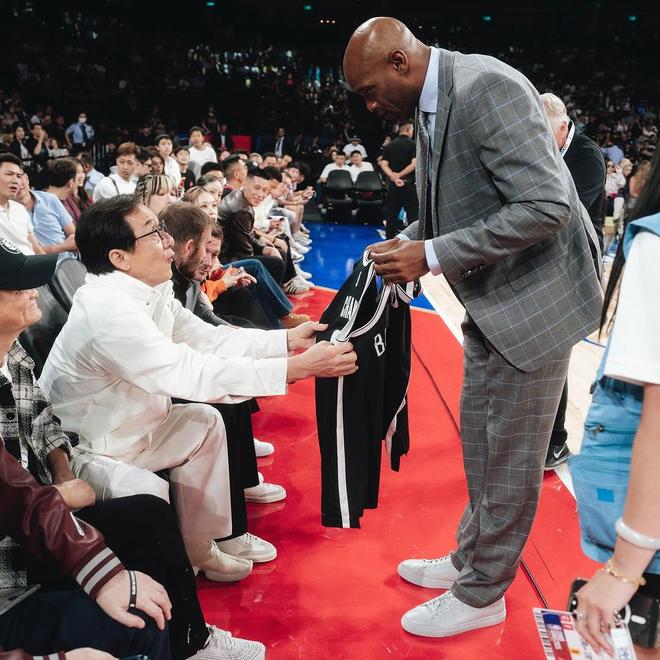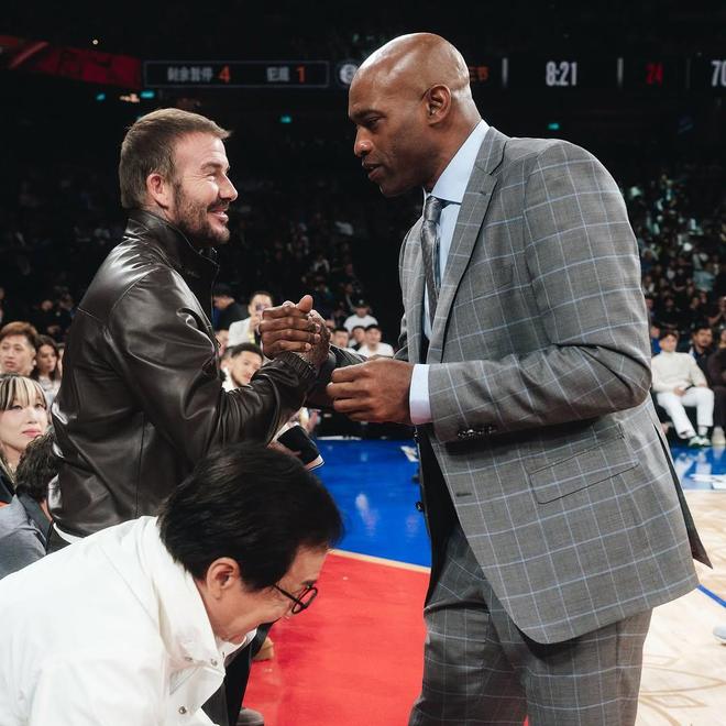 篮网社媒晒出成龙、卡特、贝克汉姆场边合影: