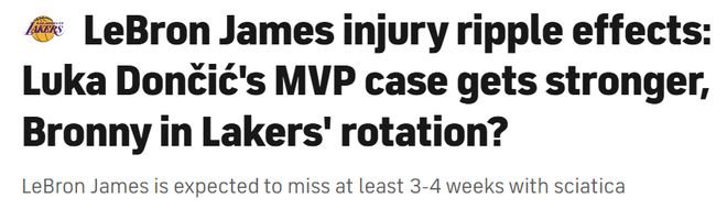 美媒解析詹姆斯缺阵影响:东契奇冲MVP更有戏?