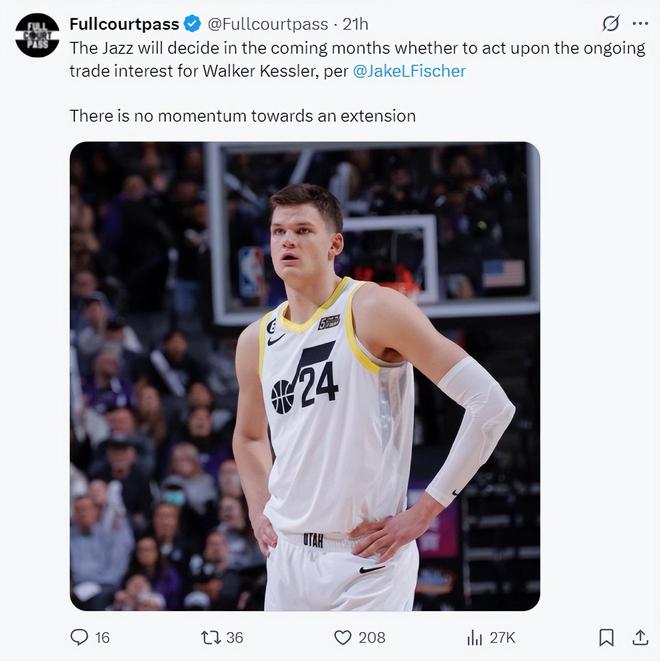 艾顿在湖人队的两场比赛发挥都不佳,首秀18分钟,2中0拿到1分8篮板1助攻1抢断2盖帽;第二场21分钟,8中3,拿到7分7篮板2盖帽,两场比赛都没有上双,合计10中3,命中率30%,对于一位身高超过7尺的内线来说太软了! 湖媒:对于艾顿的期待,展现他的防守能力、拉开空间的能力、以及出神入化的中投技巧,更重要的是打出关键得分与助攻。如果他能有一个出色的表现年,那么他的身价会得到提升。【这简直就是奢求】 北京时间10月11日,BR记者杰克-费舍尔透露,爵士队接下来几个月内会决定是否交易凯斯勒,目前双方在续约方面没有任何进展,凯斯勒对爵士管理层感到失望。 实际上9月26日就已经曝出凯斯勒与爵士的提前续约谈判陷入僵局,三年级生的提前续约截止日是10月21日,凯斯勒可能无法与球队达成续约,那么湖人就可能会重启交易谈判,此前的消息是爵士会索要里夫斯与两个首轮签。 美媒RE在北京时间10月11日晚模拟了一套方案,这套方案将细节都列出来了,湖人送出奥斯汀-里夫斯、2026年前五保护首轮、2028年前十保护首轮,从爵士换来凯斯勒,然后凯斯勒直接在湖人打先发,防守型后卫斯玛特进入先发阵容。 在詹姆斯痊愈后湖人先发阵容东契奇、斯玛特、八村垒、詹姆斯、凯斯勒,替补席上有文森特、范德比尔特、拉拉维亚、艾顿、蒂耶罗、克勒贝尔、海斯。 这套阵容才是真正意义上的防守型阵容,里夫斯与艾顿从来都不是一个顶级的防守者,而凯斯勒、斯玛特不同。 |