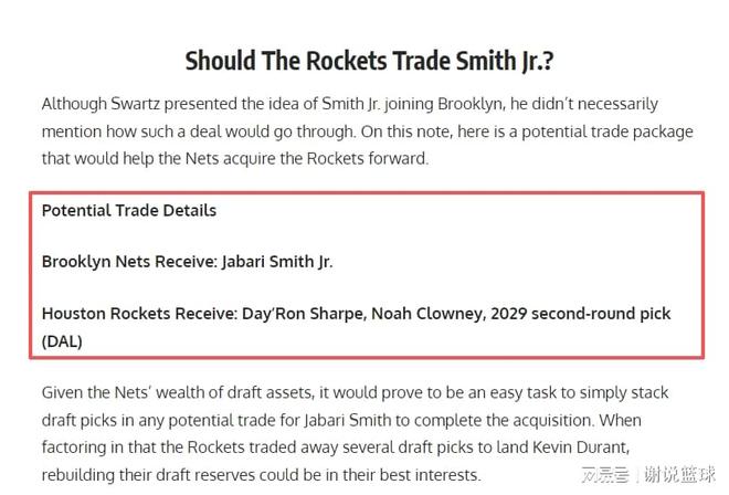 FW策划火箭跟篮网交易,前探花或被送走,换两替