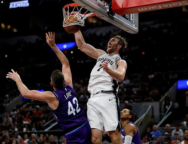 在此前的一场NBA季前赛中,主场作战的圣安东尼奥马刺经过了加时苦战后以134比130险胜了犹他爵士。本场比赛后,马刺取得了季前赛的3连胜,目前战绩为3胜0负,而爵士则是遭遇了季前赛的两连败,目前战绩为0胜2负。 本场比赛中,马刺的内线新援卢克-科内特(Luke Kornet)的表现依然是保持在一个极高的水平。科内特全场出场18分16秒,投篮4中2,罚球4中3,得到了7分6篮板3助攻2盖帽的数据,还有1次失误和1次犯规,正负值更是达到了全队最高的+20。科内特在进攻端也是在对手内线制造了一定的威胁并且拿下了一些分数。不仅如此,他在传球和策应方面的能力也是依然非常可靠的。除此之外,科内特在防守端的表现同样是相当出色的,他在篮板保护、护框和内线防守方面的作用也是肉眼可见的。科内特的出场时间并不多,但是他也是将自己在攻防两端的才能都发挥了出来,他也是在球权和战术地位有限的情况下又一次证明了自己对于比赛的影响力。 在上赛季的NBA常规赛中,科内特在82场比赛中总共代表老东家波士顿凯尔特人出场73次,场均出场时间达到了18.6分钟,场均数据为6分5.3篮板1.6助攻0.5抢断1盖帽,还有0.4次失误和1.6次犯规,投篮命中率66.8%,罚球命中率69.1%。到了季后赛,科内特总共出场11次,场均出场时间达到了16.4分钟,场均数据为4.5分3.9篮板0.5助攻0.5抢断1.2盖帽,还有0.5次失误和1.8次犯规,投篮命中率72.4%,罚球命中率100%。季前赛至今,科内特总共代表马刺出场3次,场均出场时间达到了15.7分钟,场均数据为10.7分7篮板2.7助攻0.3抢断1盖帽,还有1.7次失误和2次犯规,投篮命中率75%,罚球命中率80%。 科内特在季前赛至今的表现实在是太突出了,能够在出场时间如此有限的情况下打出这样的数据,能够在攻防两端展现出如此惊人的竞争力,绝对是远超大家预期的。今年夏天,马刺一份为期4年,总金额达到了4100万的大额合同签下了科内特,这个数字其实多多少少是有些超出大家想象的,这也会让大家对于科内特的表现非常关注。不过在看到科内特这几场季前赛的表现之后,相信马刺球迷也会对于他在新赛季的表现充满期待,他应该是能够很好地扮演维克托-文班亚马(Victor Wembanyama)替补的角色的? |