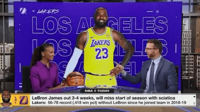 根据之前的报道,詹姆斯遭遇坐骨神经疼痛,他将至少缺席3-4周的时间。据多位记者和美媒报道称,湖人队的目标是让詹姆斯在11月6日对阵马刺队的比赛中复出,这意味着詹姆斯不仅23年来首次缺席揭幕战,还将错过开赛初的多场比赛,其中包括多场与勇士队、森林狼队等焦点之战。 在今年夏天,詹姆斯执行了球员选项,但是湖人队并没有与他进行进一步续约,这使得詹姆斯的未来前景成为了媒体和球迷们热议的话题。对此,湖人队记者Dave McMenamin这样分析说道:“当詹姆斯伤缺的时候,詹姆斯会观察一下湖人这支球队。然后如果当他伤缺的时候湖人表现很挣扎,那在本赛季某个时间点我们可能会看到关于詹姆斯的下一个决定。”