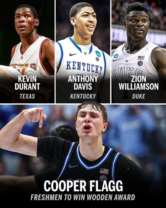 弗拉格身高2米06,体重91公斤,司职小前锋/大前锋,他拥有十分出色的体型,大一赛季在杜克效力,并且创造了一项疯狂成就:场均19.2分7.5篮板4.2助攻1.4抢断1.4盖帽,五项数据队内第一。 此外,弗拉格还成为历史上第四位获得约翰伍登奖的大一球员,前三位分别是杜兰特、浓眉、锡安,这三位都以高顺位进入NBA,并且都证明了自己不是水货。