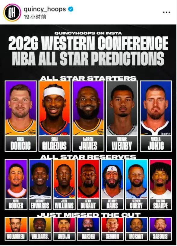 比较有争议的点在于,开拓者的夏普居然入选了替补阵容,而哈登、申京、莫兰特这些特别有实力与名气的球员却落选了。 另外,东部那边,恩比德因为健康问题被一致认为根本打不到足够场次能够入选全明星,这位前MVP现在在媒体眼里真的一文不值...