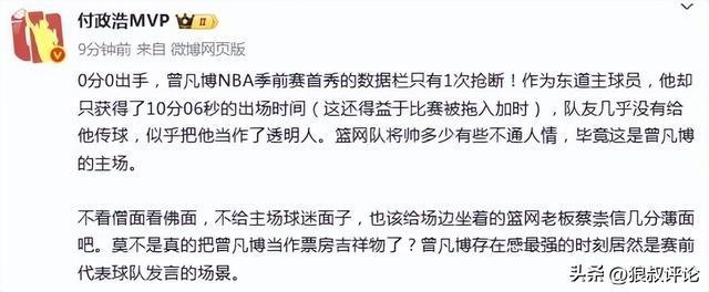 北京时间10月12日,NBA中国赛继续开打,篮网对阵太阳,赛前,林书豪接受媒体采访,提到曾凡博再次冲击NBA的话题。 林书豪表示:曾凡博是第二次在NBA的环境,当你第二次可以回到一样的环境,每个人都会调整自己的心态,会更自信。 我第一年也非常犹豫,不知道我能不能留在NBA,但已经是第二次了就不用有这么多忧虑,就拼着去打就行了,包括瀚森第一轮就已经被选上了,他夏季联赛表现这么好,今年肯定能打上球,我对他今年的表现也很期待。 根据媒体人赵探长的报道,早在小曾签约时,蔡老板就非常兴奋了,他还嘱咐教练多给小曾机会。 不过第一场比赛,登场超过10分钟,曾凡博没有任何出手权,游离在篮网体系之外引发外界的吐槽,虽然说曾凡博刚刚复出不久,身体状态未能达到最佳行列,但毫无疑问是主场作战,篮网教练组更多的是把曾凡博作为“卖票和宣传”性质的球员,价值体现在球场之外。 对此,G2的比赛,蔡老板的嘱咐教练多给小曾机会能否兑现承诺,相信是外界关注的焦点,本场比赛也是中国赛最后一战,若是篮网不久之后就选择裁掉曾凡博,那么篮网队在新赛季中国球迷的口碑方面恐都会受到比较大的影响。 曾凡博将会打上澳门赛“特供球员”的标签。 媒体人付政浩曾经在首战发文点评:0分0出手,曾凡博NBA季前赛首秀的数据栏只有1次抢断!作为东道主球员,他却只获得了10分06秒的出场时间(这还得益于比赛被拖入加时),队友几乎没有给他传球,似乎把他当作了透明人。篮网队将帅多少有些不通人情,毕竟这是曾凡博的主场。 不看僧面看佛面,不给主场球迷面子,也该给场边坐着的篮网老板蔡崇信几分薄面吧。莫不是真的把曾凡博当作票房吉祥物了?曾凡博存在感最强的时刻居然是赛前代表球队发言的场景。 |