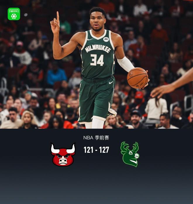 北京时间10月13日NBA 季前赛,芝加哥公牛对阵密尔沃基雄鹿。半场公牛61-65雄鹿,最终公牛121-127雄鹿。芝加哥公牛多森姆22分3板2助,布泽利斯19分4板;密尔沃基雄鹿库兹马19分5板1助,迈尔斯-特纳19分6板1助。