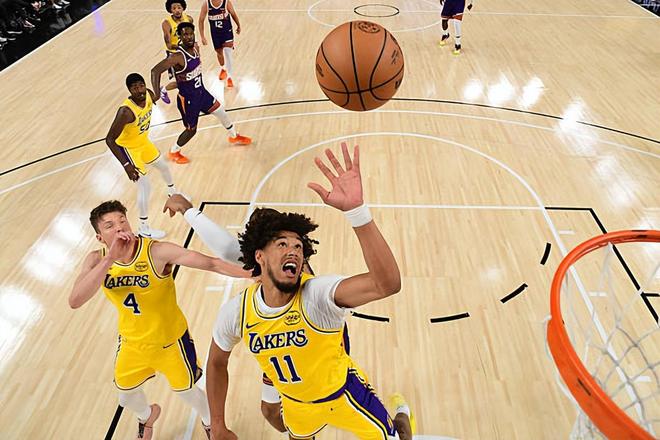 本场比赛中,湖人的替补中锋贾克森-海斯(Jaxson Hayes)的表现还是相当不错的。海斯全场出场13分46秒,投篮4中2,罚球4中1,得到了5分4篮板1助攻1抢断的数据,还有1次犯规,正负值为+6。海斯在进攻端也是展现出了一定的篮下得分能力,他也算是抓住了机会得到了一定的分数。海斯在防守端的表现也算是中规中矩,他也是能够起到篮板保护和内线防守方面的作用的。海斯在本场比赛中的表现与球队的先发中锋德安德烈-艾顿(DeAndre Ayton)相比确实是有着巨大的差距的,但是毕竟他的工资摆在那,他也只是球队的替补中锋,而且他的出场时间也是比较有限的。能够在这种情况下保持稳定的竞争力,已经是很好地完成了自己的任务了。